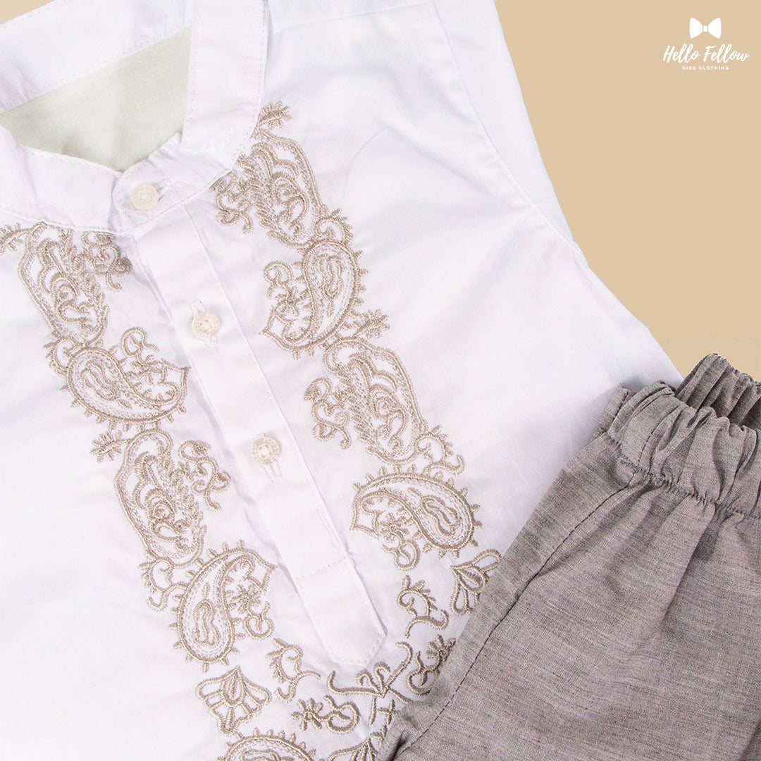 Boy's Formal Outfit Set - White & Brown