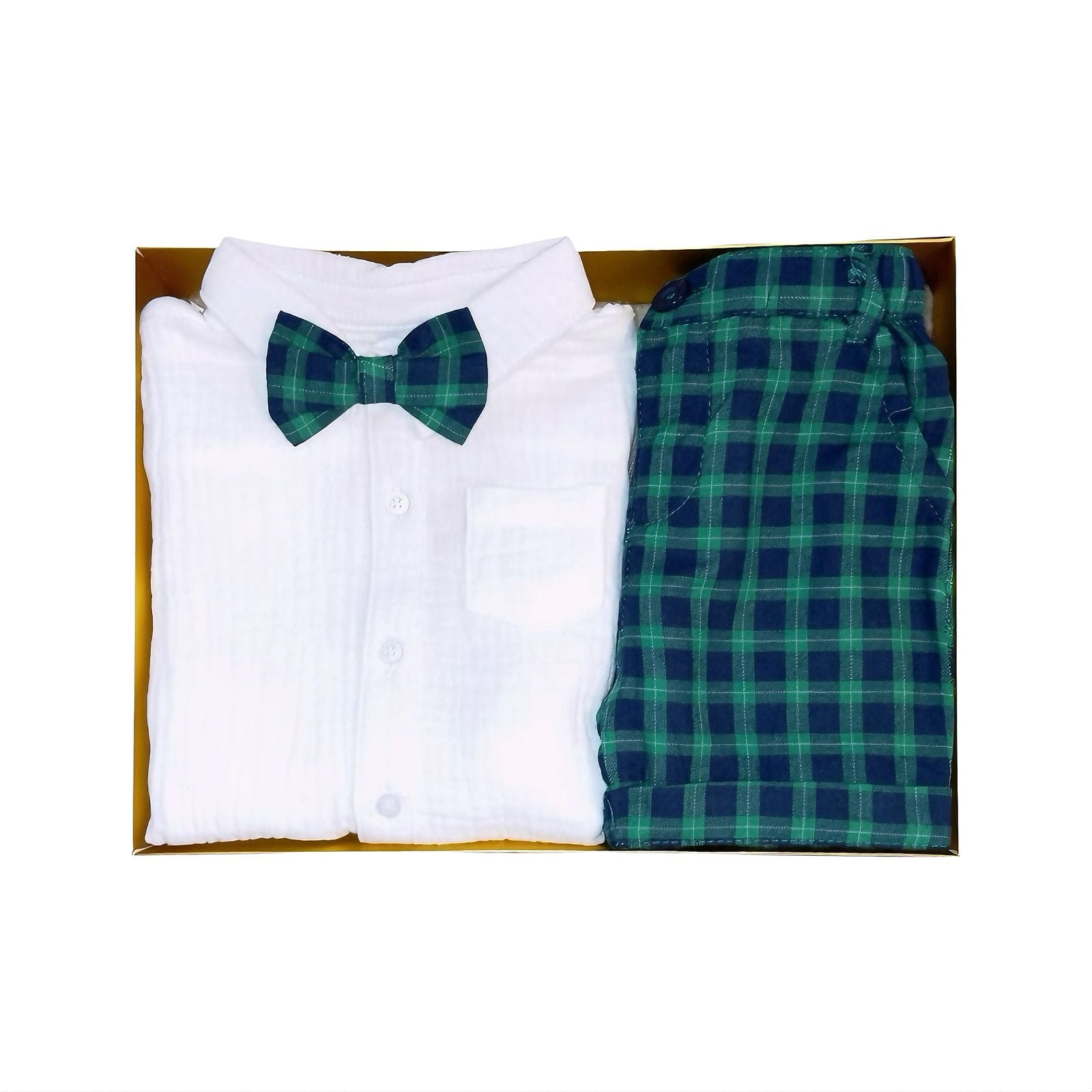 The perfect gift for young gentlemen, this hamper features a crisp white shirt paired with coordinating green check shorts and a matching bow tie for a polished, put-together look. Ideal for special occasions, celebrations, or everyday style, this complete outfit set makes gifting effortless and impressive.